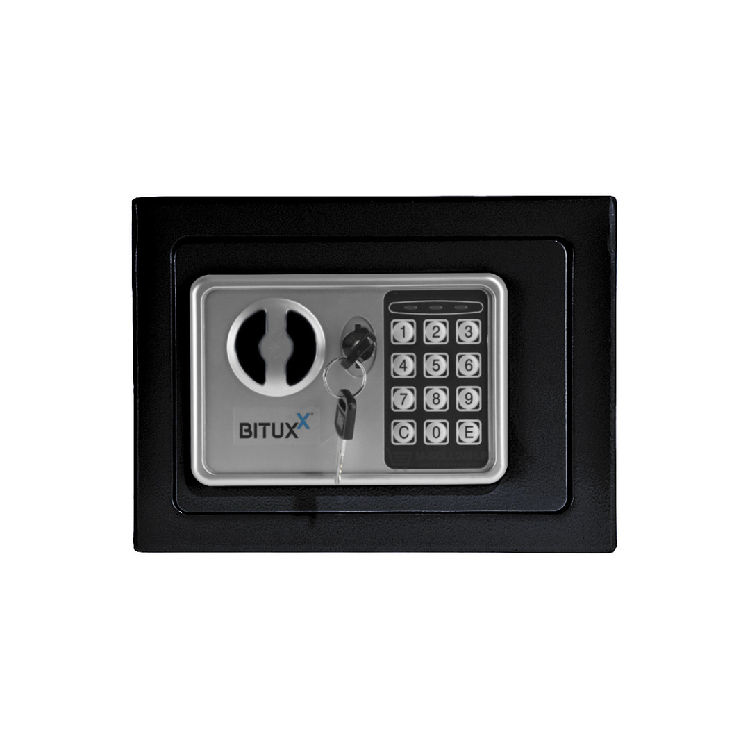 Dzięki jego wielkości jest bardzo dyskretny, zapewnia oszczędność miejsca przy instalacji. Sejf można bezpiecznie zamontować w miejscu szafki na ścianie itp.Otwarcie jest możliwe tylko poprzez wprowadzenie osobistego numeru identyfikacyjnego lub za pomocą dołączonego klucza. Drzwi z zamknięciem podwójnym zapewniają bezpieczeństwo przed nieuprawnionym użyciem, próbą otwarcia.