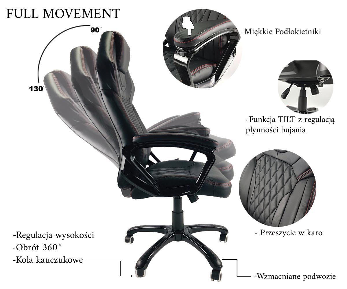 - Funkcja TILT umożliwia odchylenia oparcia jak i bujania się na fotelu