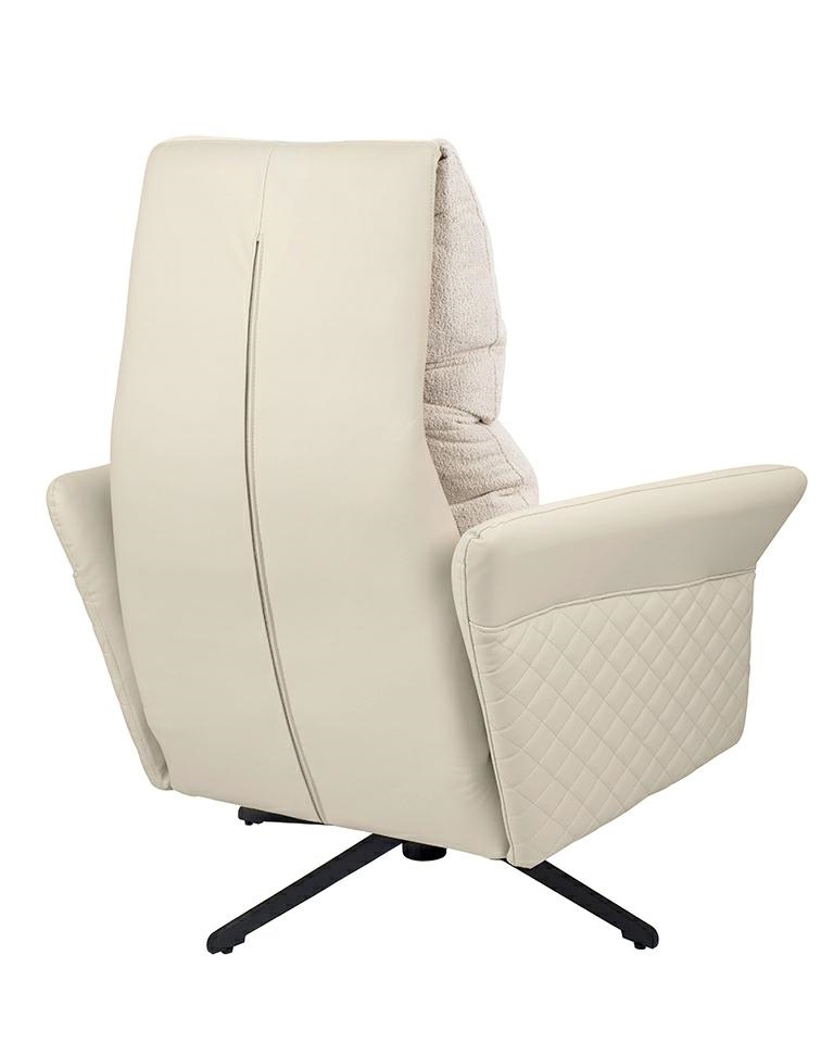 Korpus fotela oraz podłokietniki wykończono skórą PU w beżowym odcieniu.