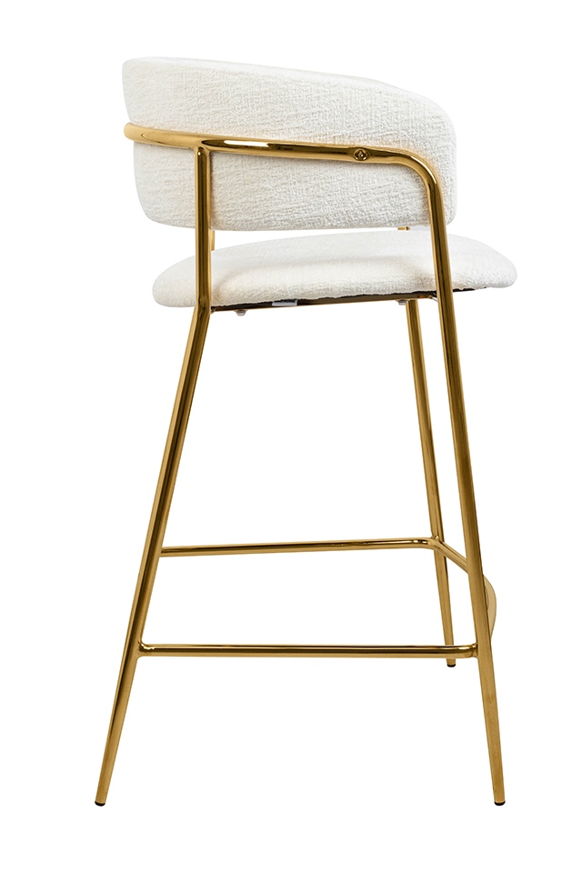 Siedzisko oraz oparcie wykonano z wysokiej jakości tkaniny o delikatnej fakturze w białym kolorze, nadającym lekkości i klasy każdemu wnętrzu.