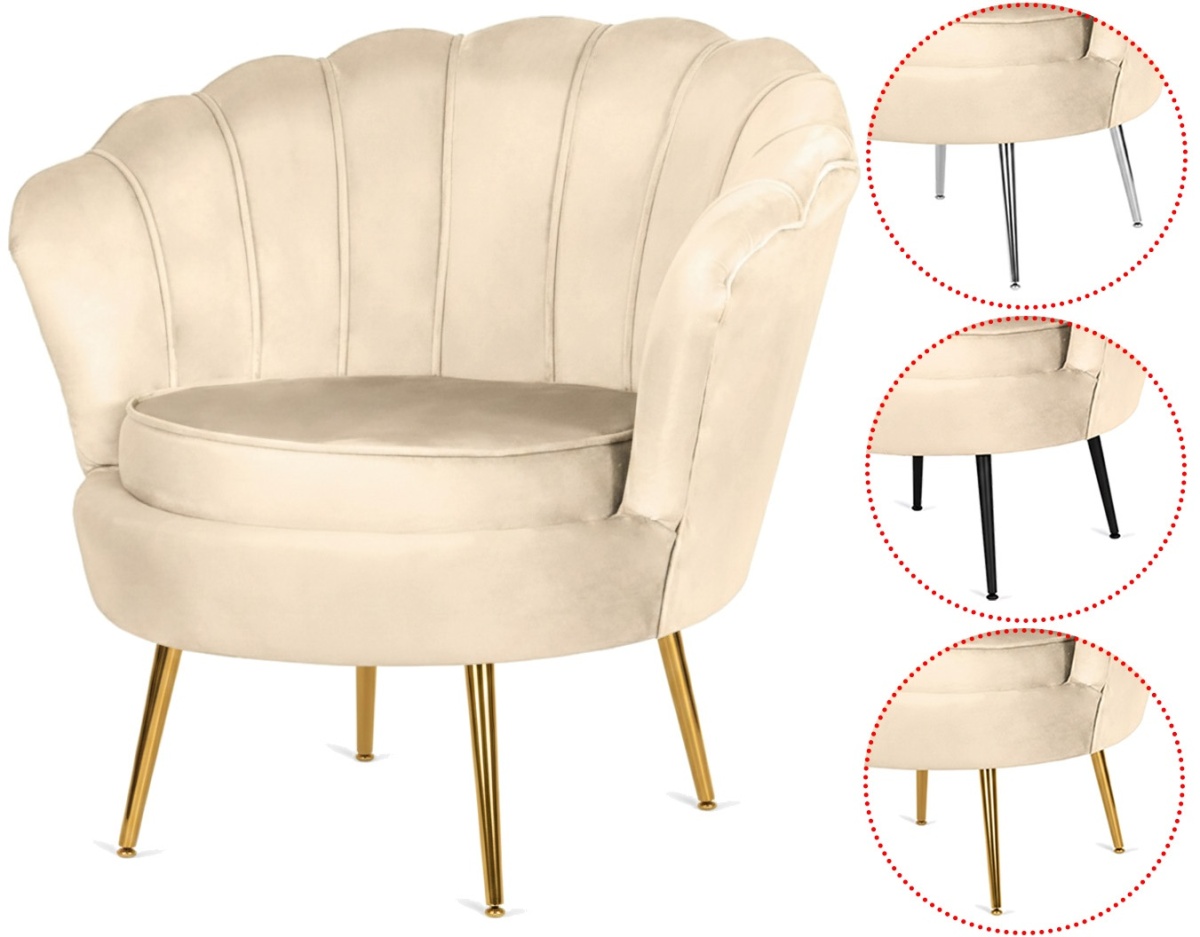 Krzesło Fotel Muszla Lugano DONNA VELVET BEIGEKrzesło Fotel Muszla Lugano DONNA VELVET BEIGE