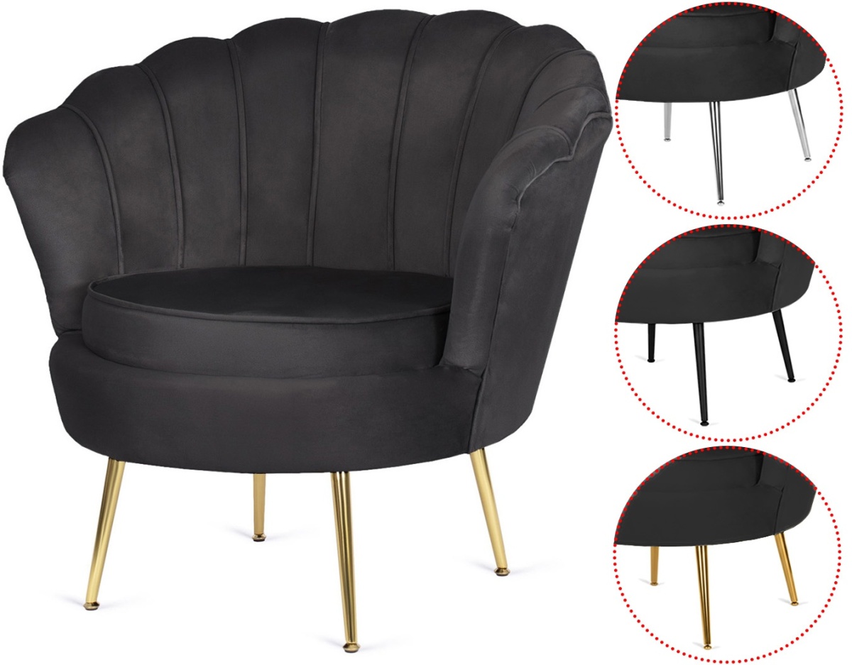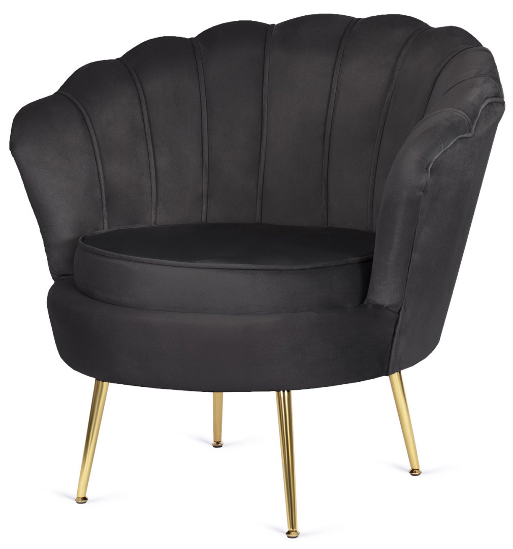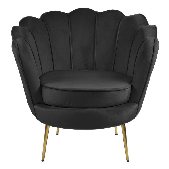 DONNA VELVET – Fotel zwany Muszlą- krzesło tapicerowane w kolorze czarnym, z unikatowym wzorem siedziska oraz oparcia.