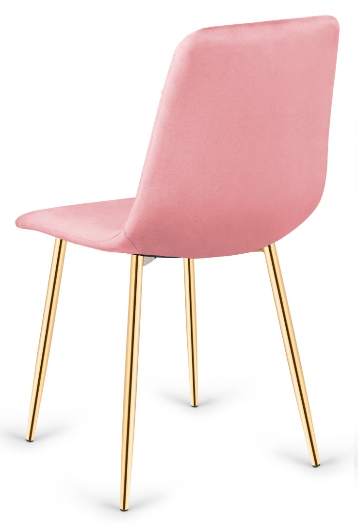 TRIO – Nowoczesne krzesło tapicerowane welurową tkaniną w kolorze różowym.