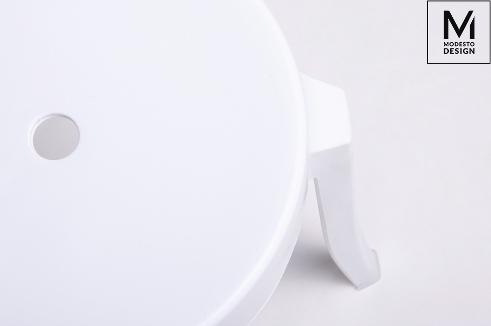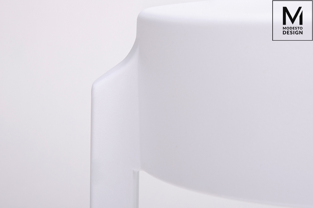 Stołek w całości wykonany jest z polipropylenu w kolorze białym matowym.