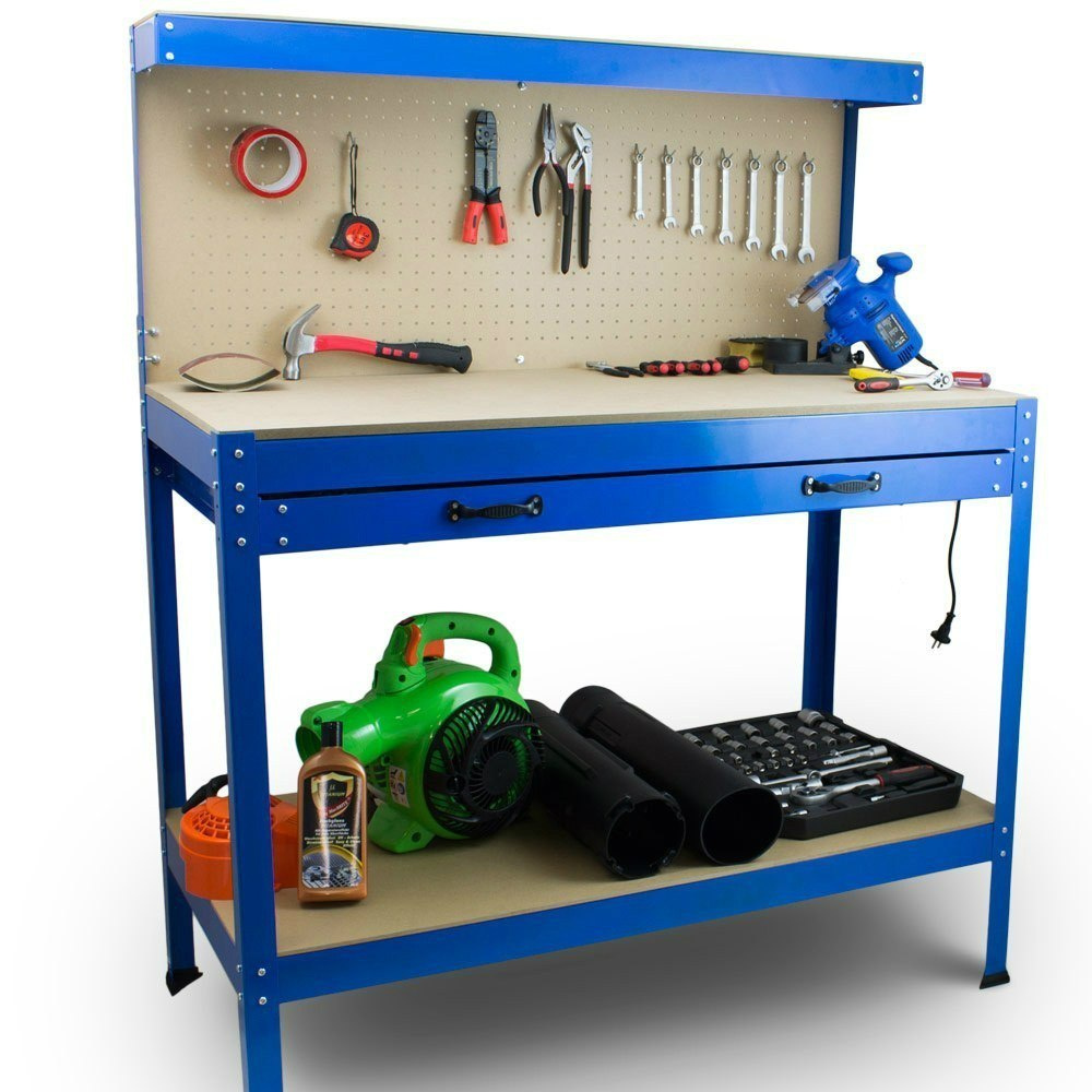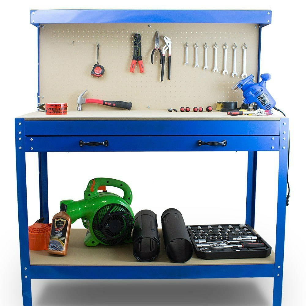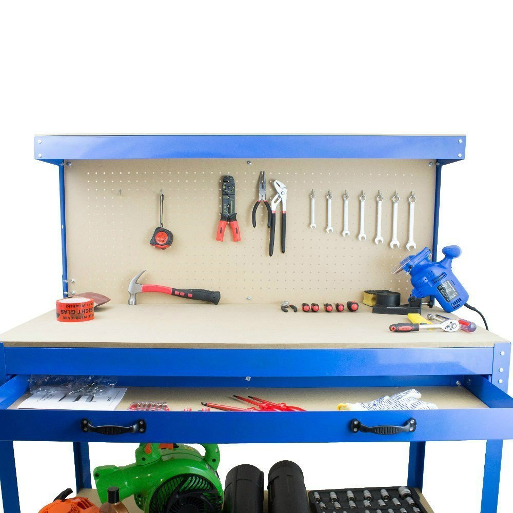 Roboczy Stół Warsztatowy z blatem i ścianą na narzędzia BITUXX +szufladaRoboczy Stół Warsztatowy z blatem i ścianą na narzędzia BITUXX +szuflada