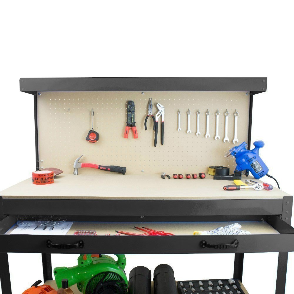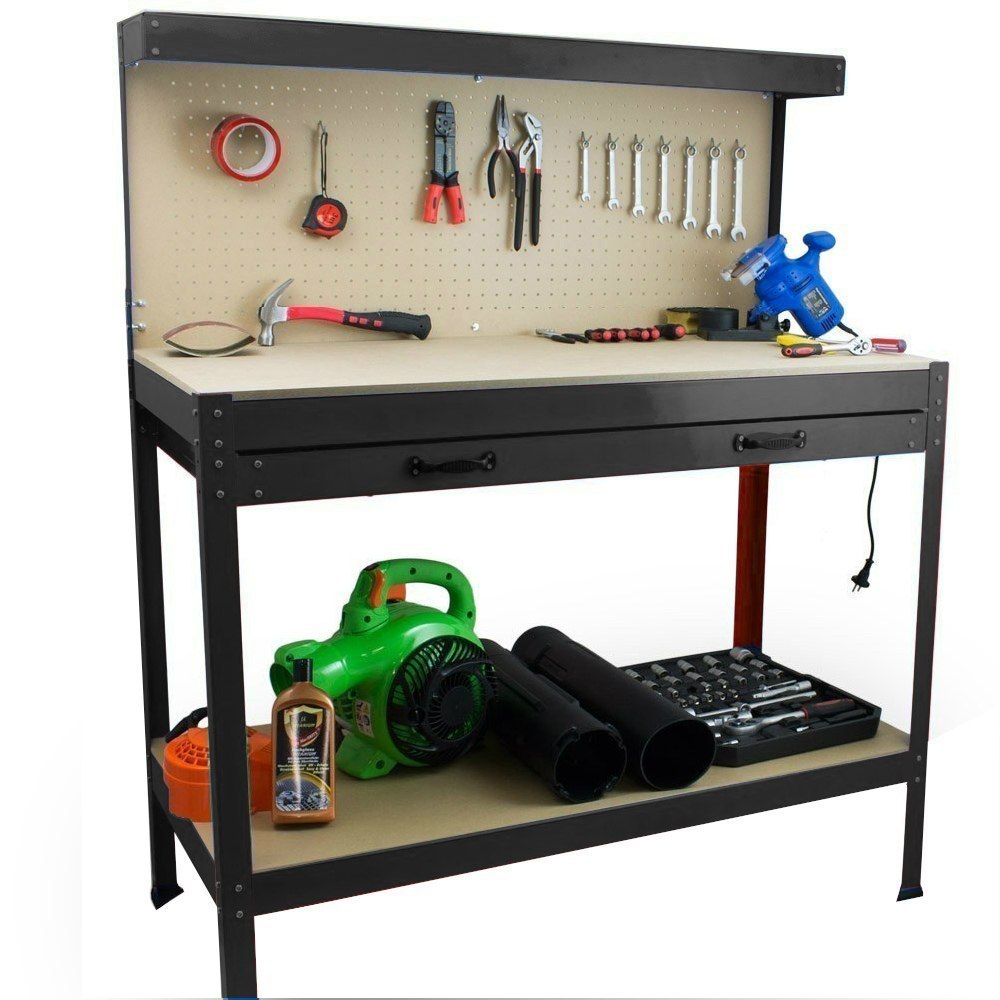 Nasz stół znajdzie praktyczne zastosowanie w każdym warsztacie, garażu czy pomieszczeniu gospodarczym. Duża szuflada na przechowywanie narzędzi, uchwyty na których można powiesić klucze i półka na dowolne akcesoria.W twoim garażu nareszcie zapanuje porządek. Stół został wykonany z wysokiej jakości materiałów dzięki czemu jest stabilny i wytrzyma obciążenie do 100kg. Teraz majsterkowanie będzie prawdziwą przyjemnością.