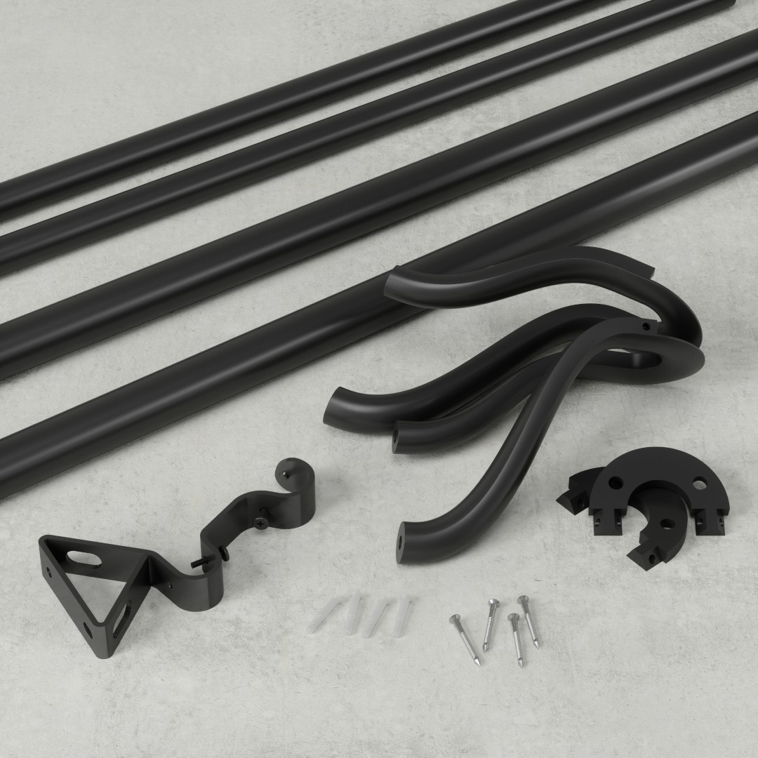 Montowany bezpośrednio do ściany, ma mocną i stabilną konstrukcję. Można na nim zawiesić dwie zasłony. Jest dostępny w wielu rozmiarach.